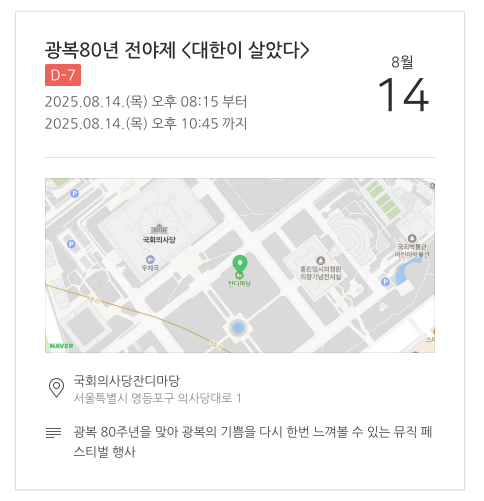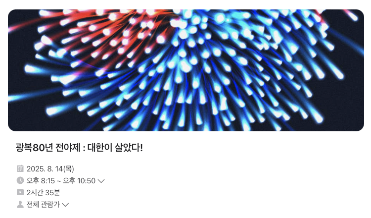 - 행사명: 광복80년 전야제 '대한이 살았다'